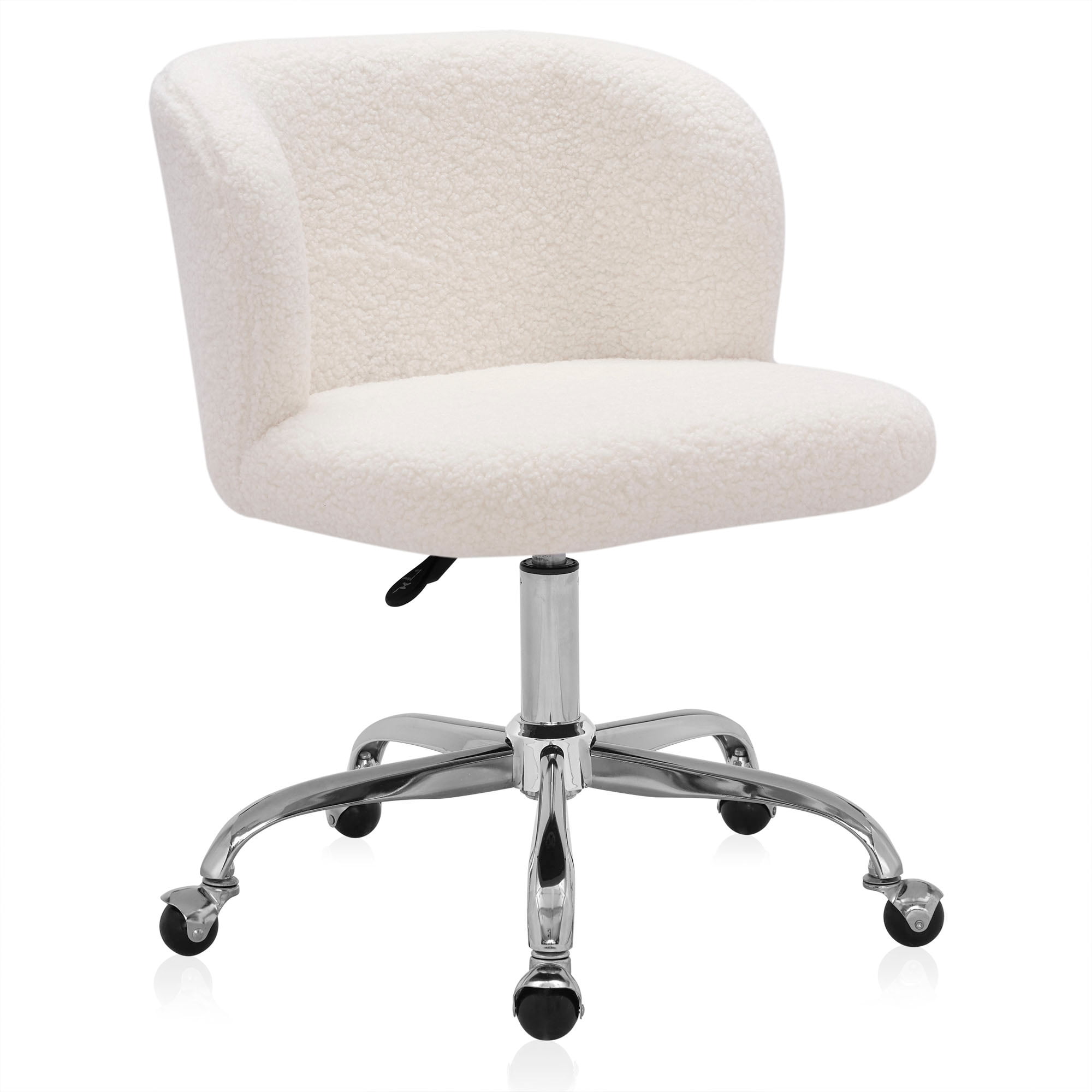Belleze Modern Upholstered Boucle Desk Chair With Swivel Wheels And Adjustable Height Decorative Rolling Office Or Vanity Stylish Comfy Aston White Walmart Com
